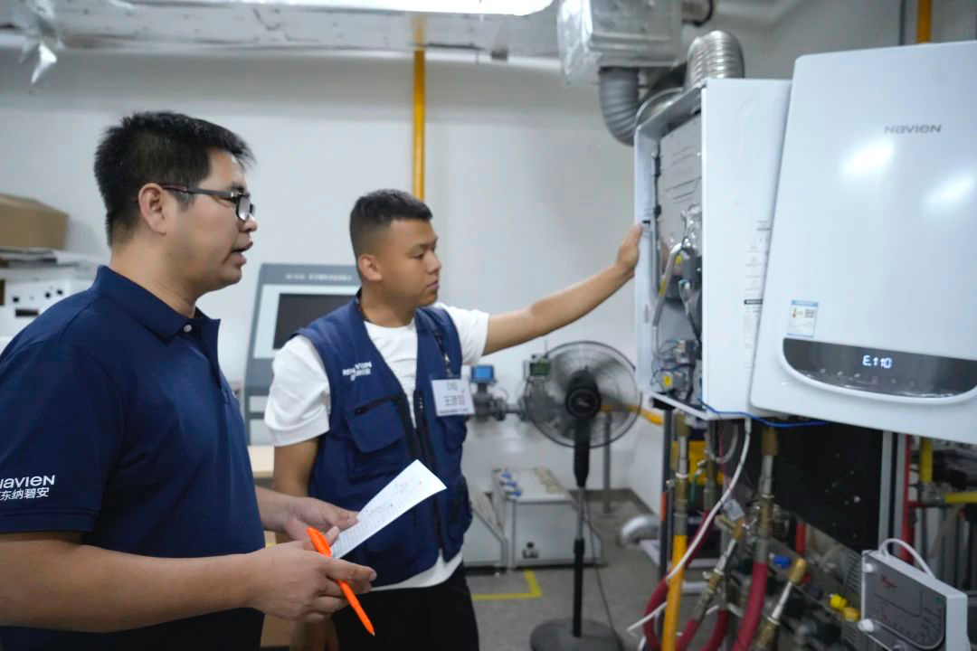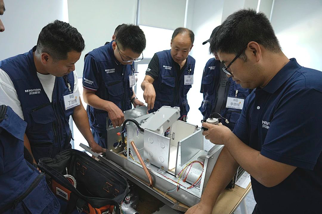 培訓(xùn)核心內(nèi)容圍繞產(chǎn)品安裝調(diào)試與系統(tǒng)實(shí)操兩大板塊,詳細(xì)剖析了NCB300全預(yù)混冷凝爐與NGB390燃?xì)鉅t的精髓。在實(shí)操環(huán)節(jié),講師們分享豐富的維修經(jīng)驗(yàn),學(xué)員們則積極動手進(jìn)行上機(jī)拆機(jī)操作,技能實(shí)現(xiàn)質(zhì)的飛躍。這三天里,理論與實(shí)踐緊密結(jié)合,助力工程師們技術(shù)更上一層樓,從而能夠?yàn)橛脩籼峁└訉I(yè)、卓越的售后服務(wù)。