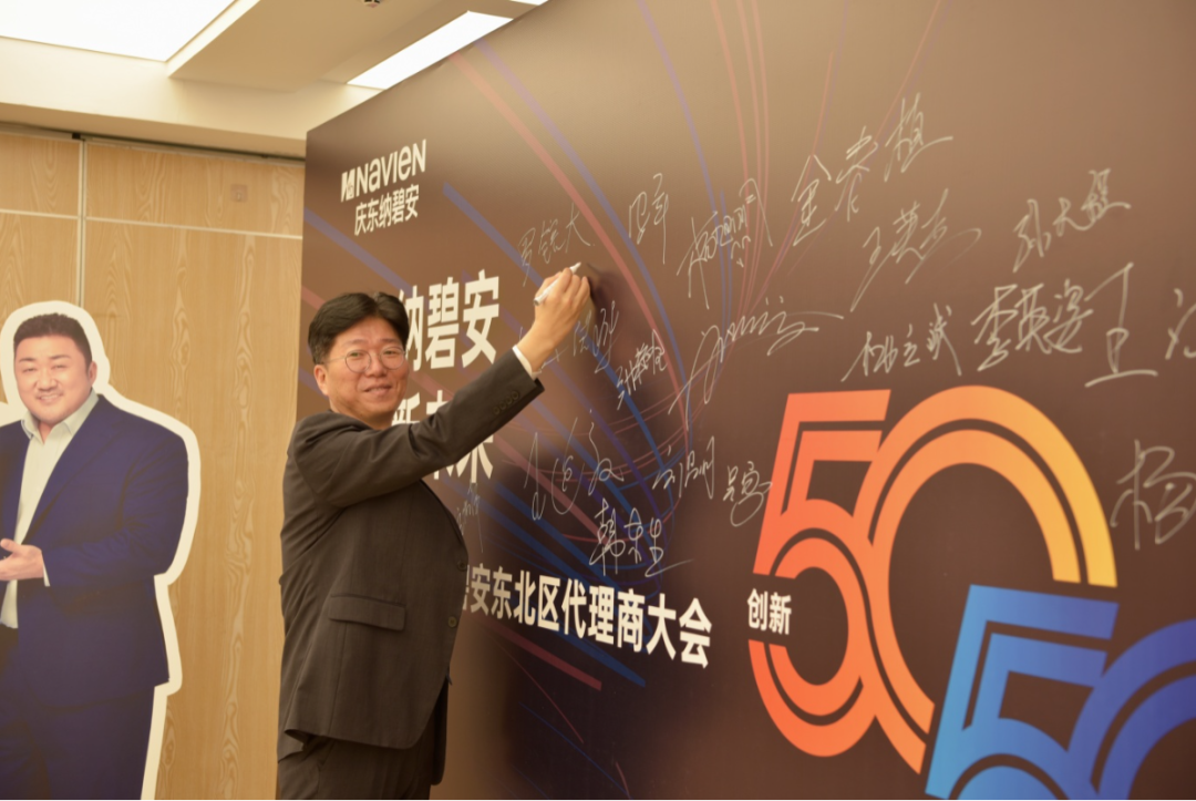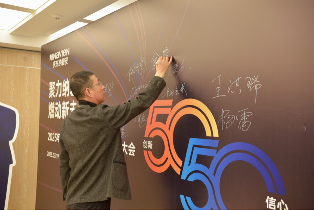 會議伊始,一場極具儀式感的“新品簽名儀式”拉開帷幕。與會嘉賓紛紛在慶東納碧安新品壁掛爐上鄭重簽名,這不僅是對產(chǎn)品品質(zhì)的認(rèn)可,更是區(qū)域合作信念的集中表達(dá)。